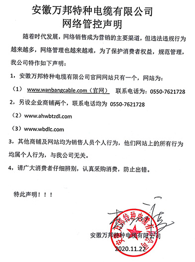 鄭重聲明:安徽萬邦特種電纜有限公司官方網站為:www_wanbangcable_com.aynxstr.cn,除此之外無任何子網站或合作網站,其余均為假冒偽劣。電話:0550-7621728 13485756353 地 址:安徽省天長市滁州高新技術產業開發區經四路29號